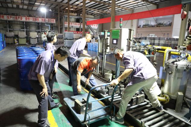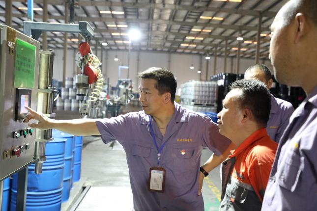 近日,柳州市计量所“计量先锋党员队”前往柳州市司能石油化工有限公司开展“企业服务年”活动,指导企业解决计量技术难点。该公司致力于高档润滑油的研制、生产和销售服务,年生产能力达10万吨。在该企业生产线现场检定时,企业反馈其液态灌装线的称重误差值较大,希望能帮助其减少误差,保证称重值的稳定。