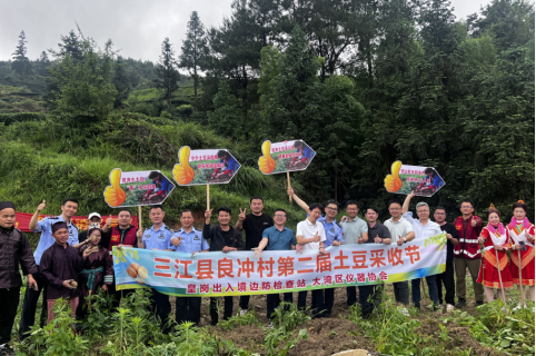????座谈会后,皇岗边检站一行还与良冲村共同举行了良冲村第二届土豆采收节启动仪式,现场为农户销售小土豆250余斤,有效促进农民增收。